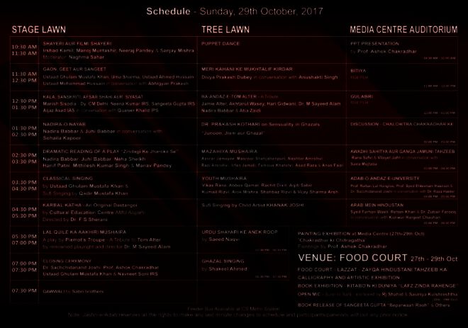 دہلی کے ائی جی این سی اے میں ہندوستان کی سب منفرد اور سب سے اعلی سہ روزہ کلچرل اور ادبی محفل کا آج سے آغاز‘27‘28‘29تک نئی دہلی میں جاری رہنے والے اس سہ روزپ فیسٹول میں ادارے سیاست کی آرٹ گیلری بھی قائم کی گئی ہے‘ جہاں میں عربی فن پاروں کی نمائش کی جائے گی۔]